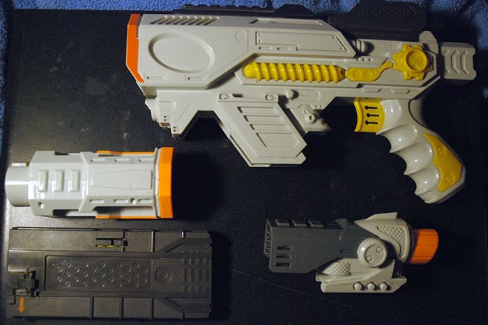 After failing to find anything cool to customize at local dollar stores (a huge let down since I heard rumors of a green Robocop Auto-9 replica being sold in discount stores), I ran out to TRU to see what cheap guns I could find. Turns out none are cheap lol.